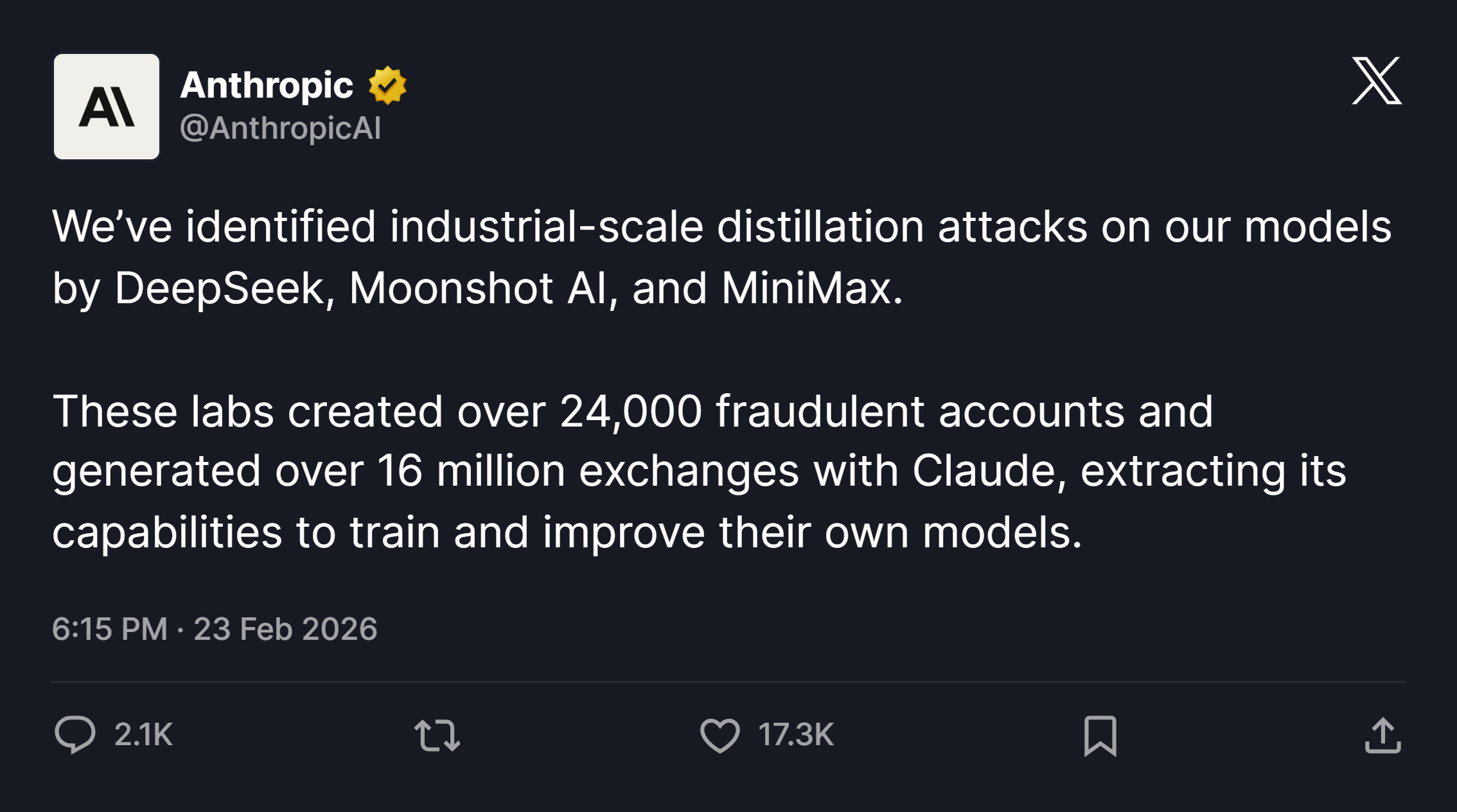 Anthropic dropped a bombshell: three major AI laboratories -- DeepSeek, Moonshot AI, and MiniMax -- had been running industrial-scale campaigns to illicitly steal Claude's capabilities. They created over 24,000 fraudulent accounts, generated more than 16 million exchanges with Claude, and used the extracted data to train and improve their own competing models. The technique they exploited is called knowledge distillation -- a method that is legitimate, widely used, and now increasingly weaponized.